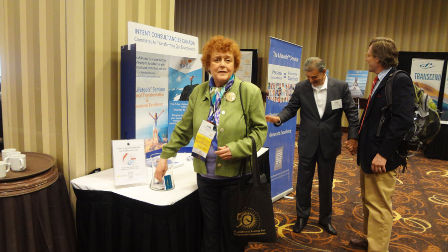 Judith Hale 2011-12 ISPI President handing over prize to Ruth Noxon Day 2 winner of ICC draw