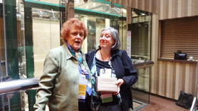 Judith Hale 2011-12 ISPI President handing over prize to Ruth Noxon Day 2 winner of ICC draw